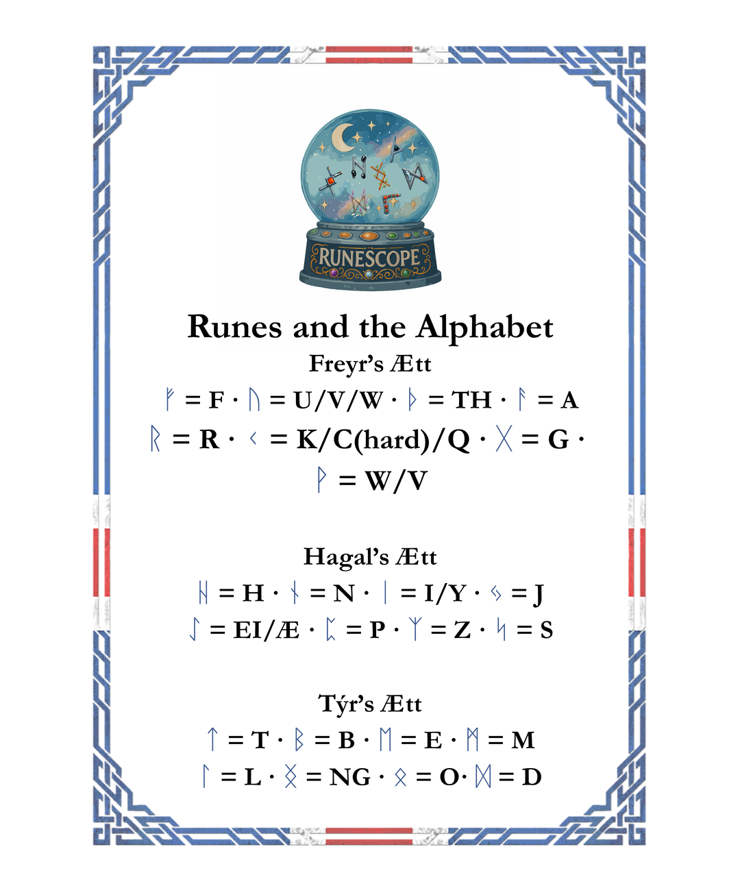 Find out what letters of the alphabet apply to each of the runes and spell out your initials or name runic style. Find out more about the runes and all of their elements and components in our e-book right here.