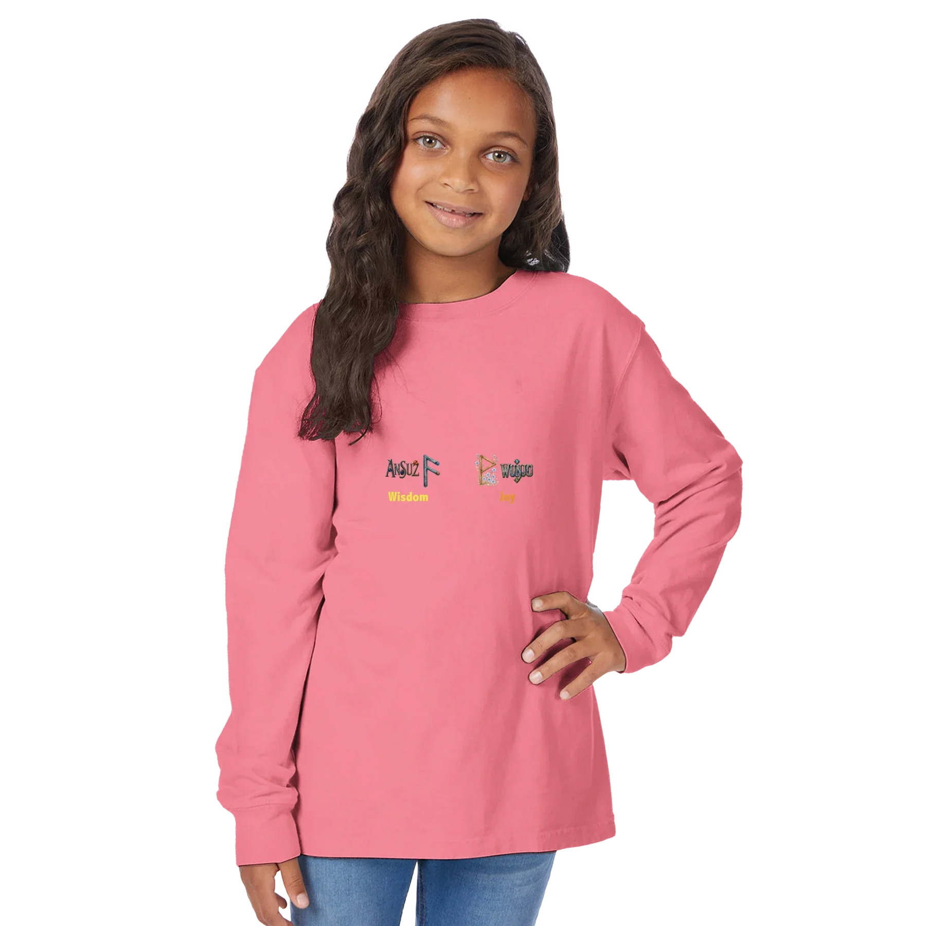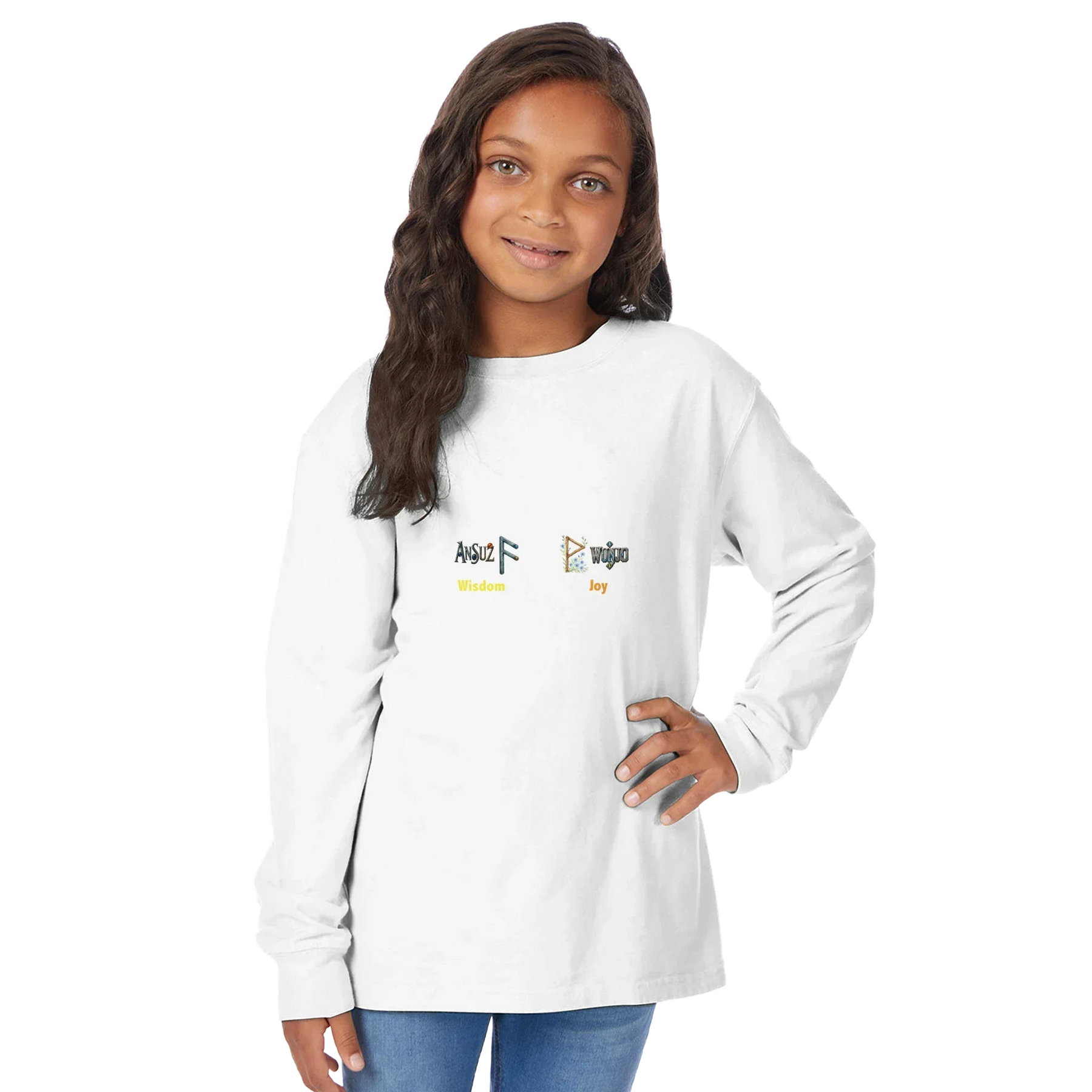 Give your young one's a gift that’s more than clothing — a symbol of who they are becoming. This custom RuneScope Kids Long sleeve Crewneck T-shirt features your child’s Birth Rune and Fate Rune, side by side, to show the balance of their unique journey.