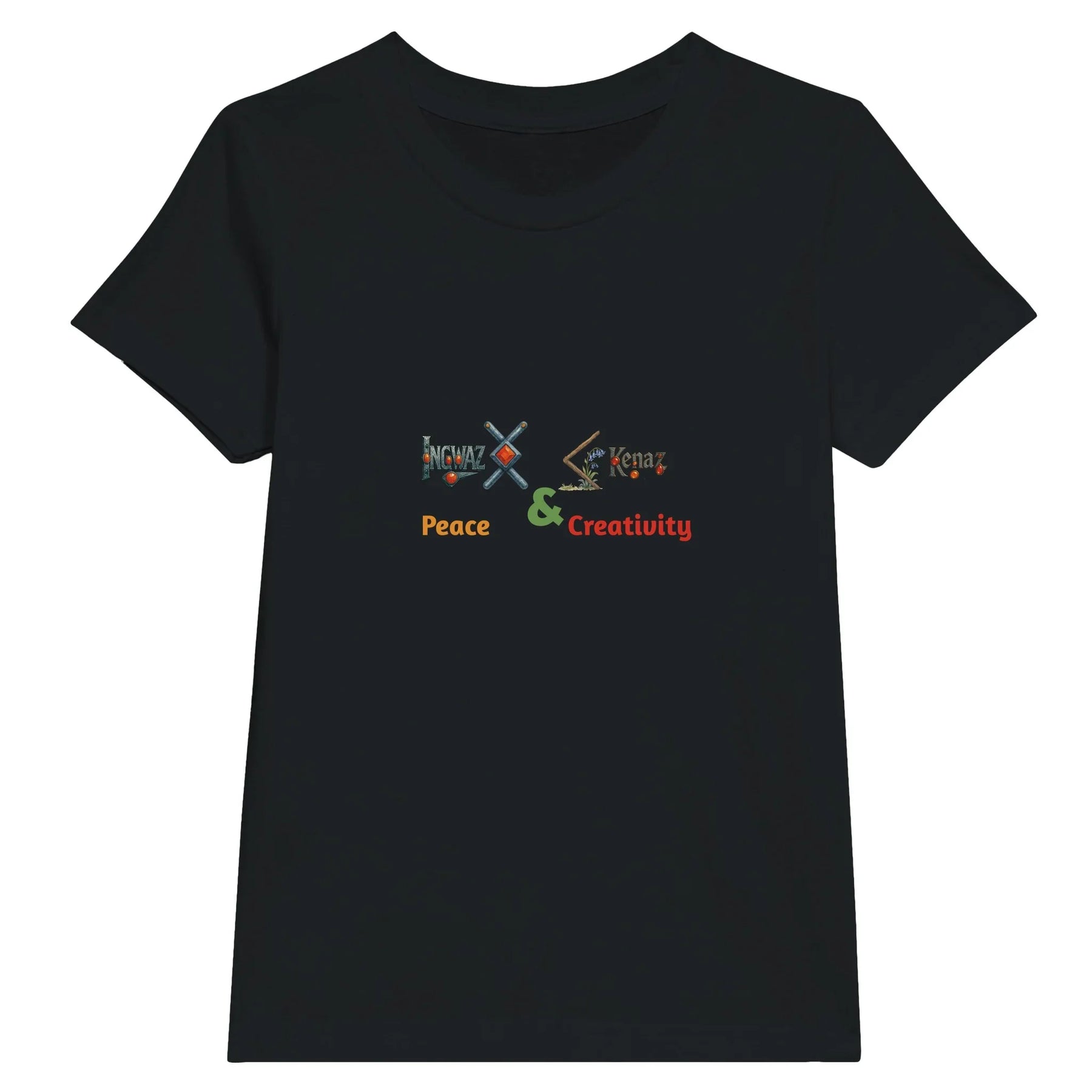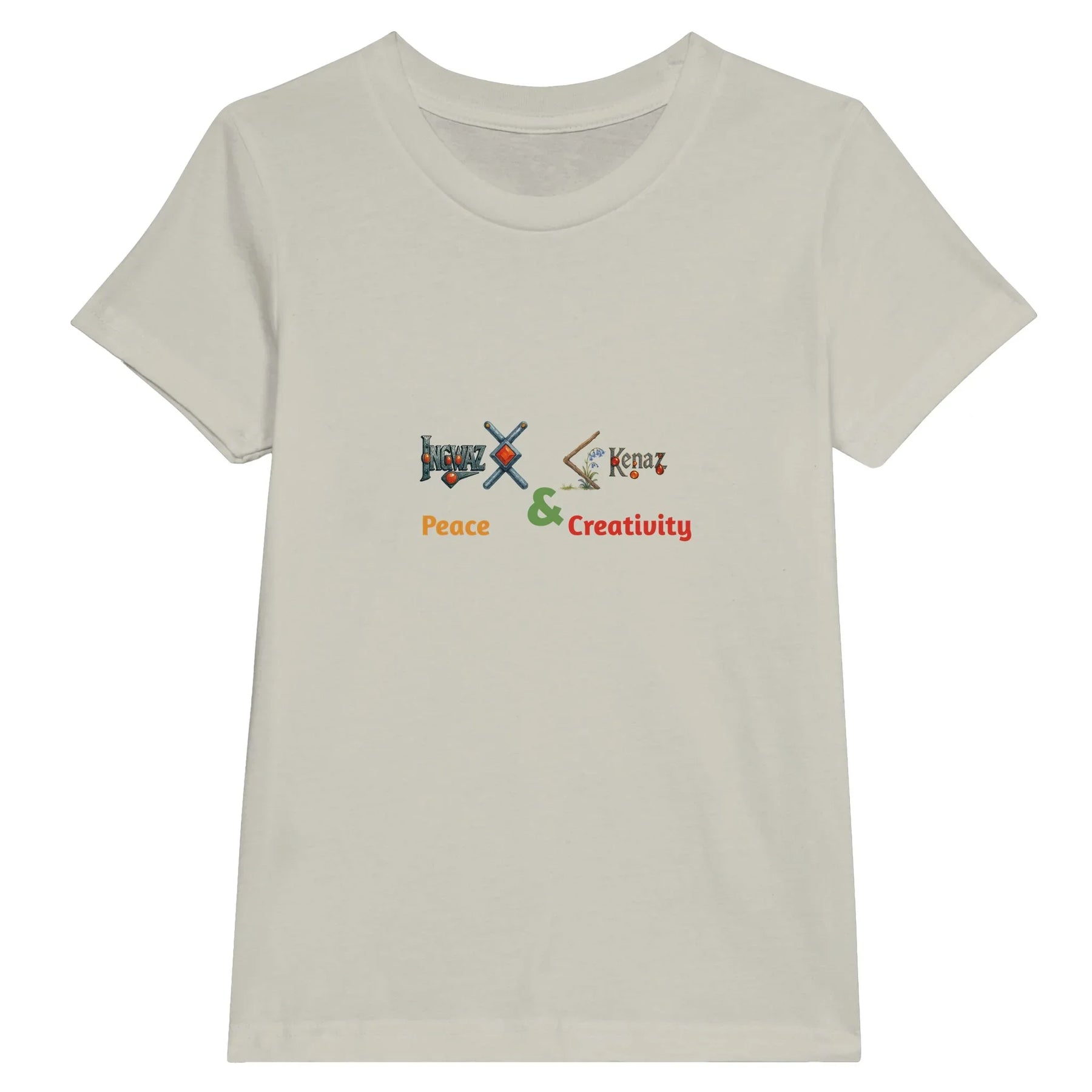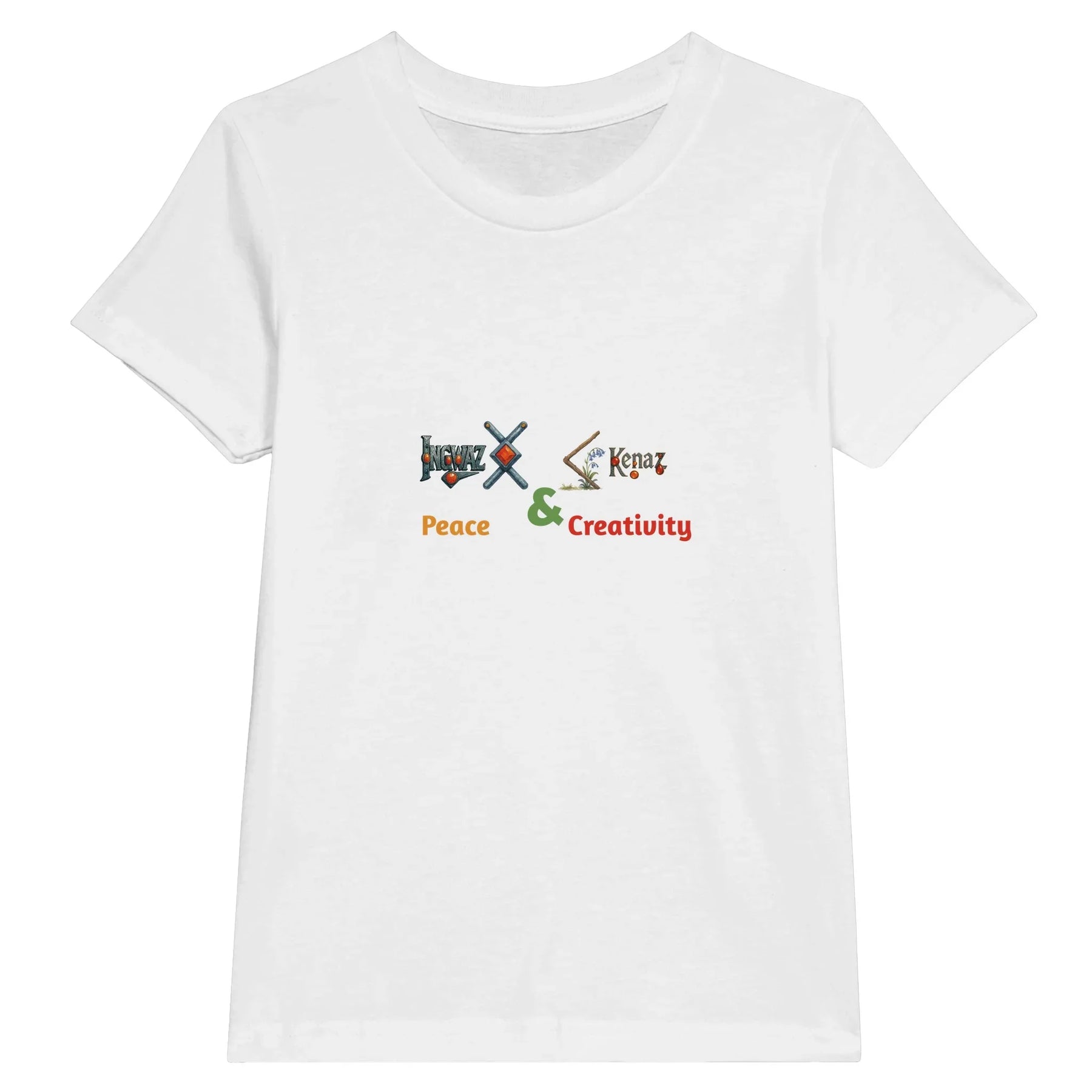 This custom RuneScope Kids Tee shows your child’s Birth Rune and Fate Rune, joined with an &, and personalized with two uplifting words that you fill in.